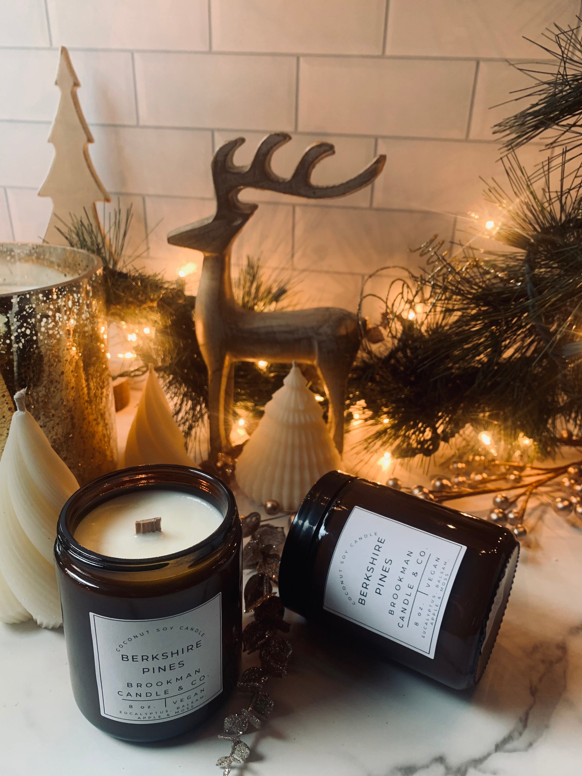 Berkshire Pines – Hand-Poured Coconut Soy Candle in Amber Vessel (8 oz.)
