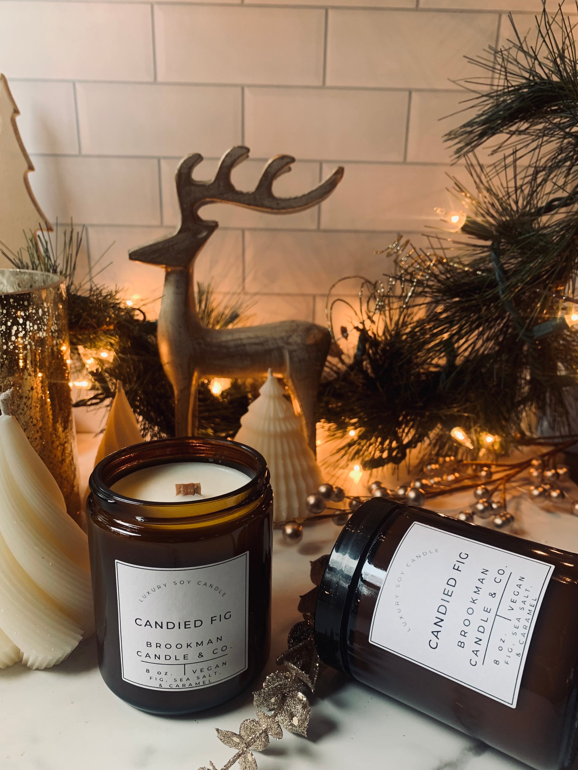 Candied Fig – Hand-Poured Coconut Soy Candle in Amber Vessel (8 oz.)