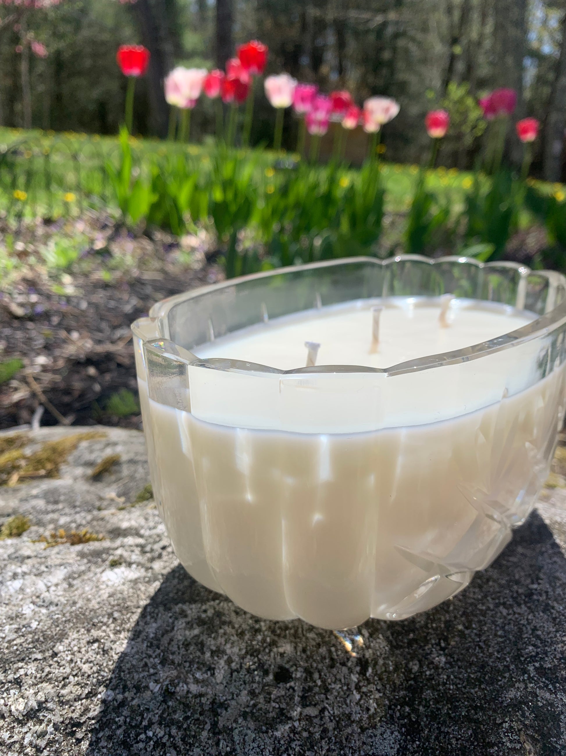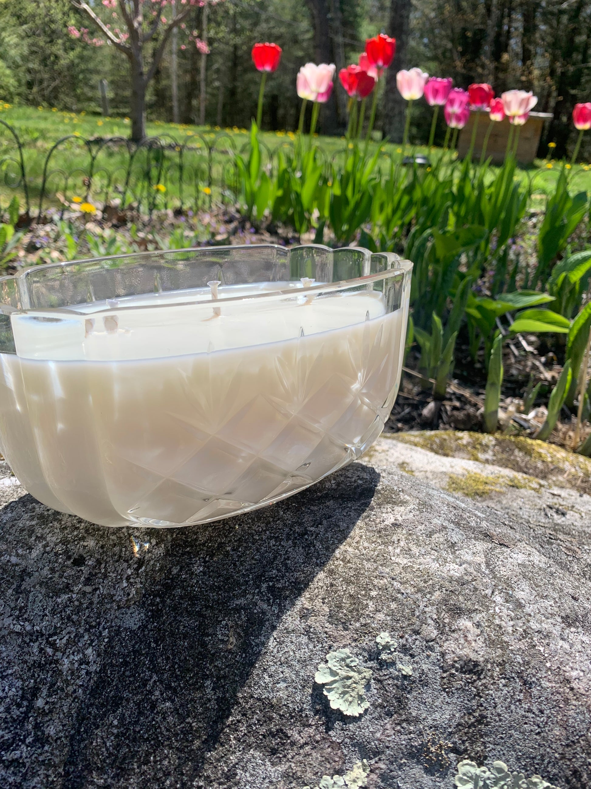 Keep candles out of reach of children and animals and always place on a stable non flammable surface, never leave unattended and try not to burn more then 4 hours, debris from wick may discolor wax after prolonged burn times.