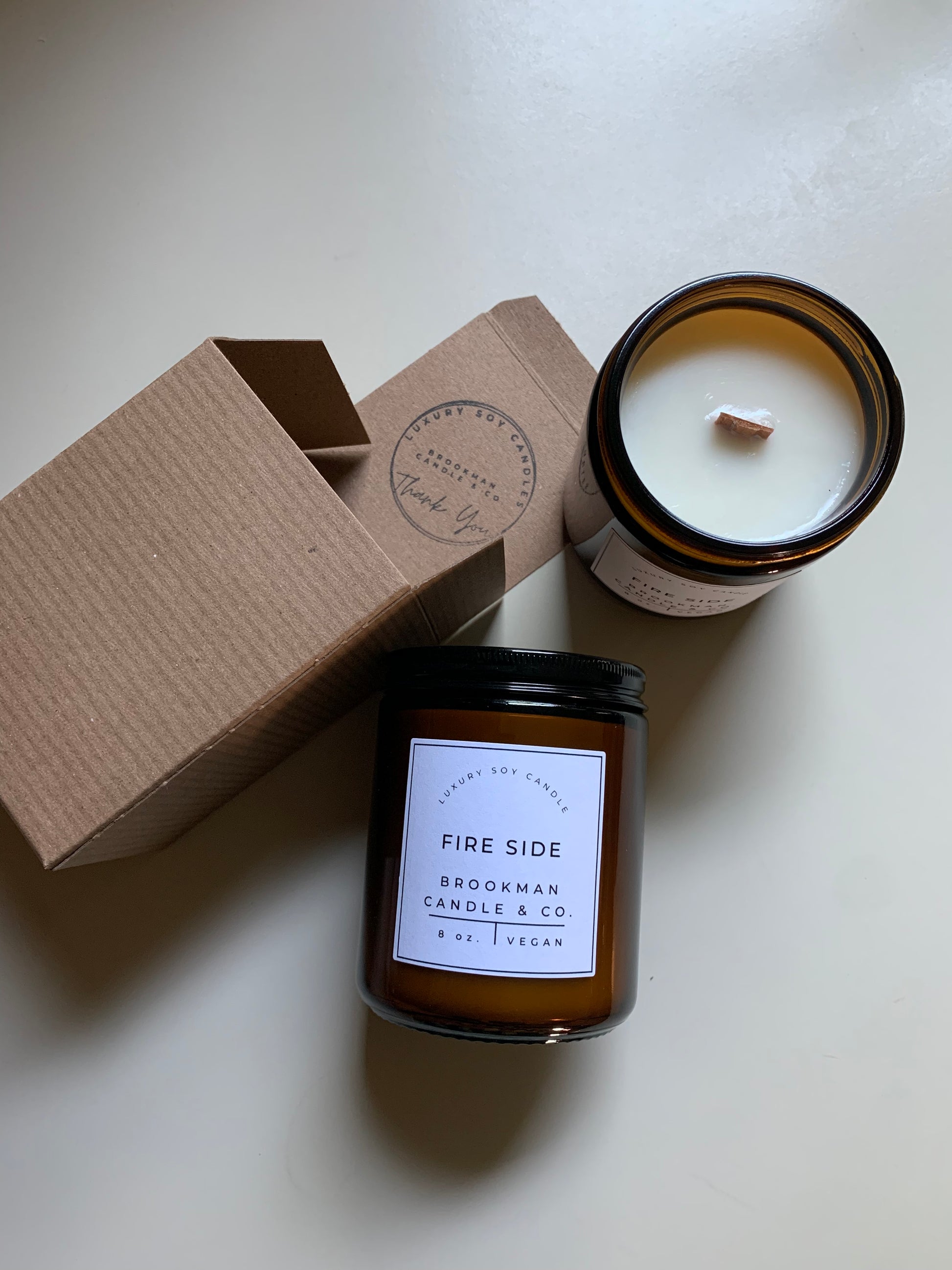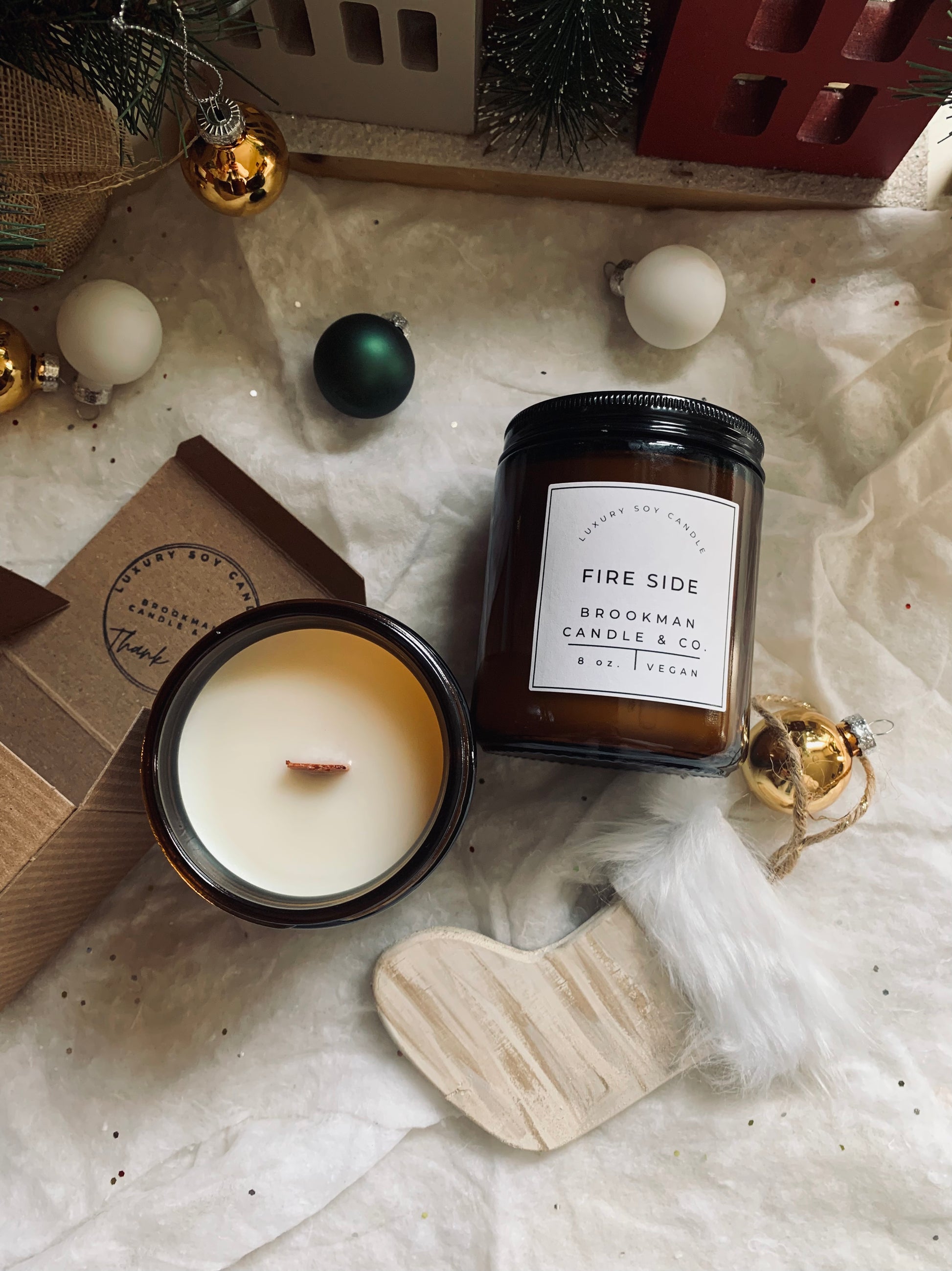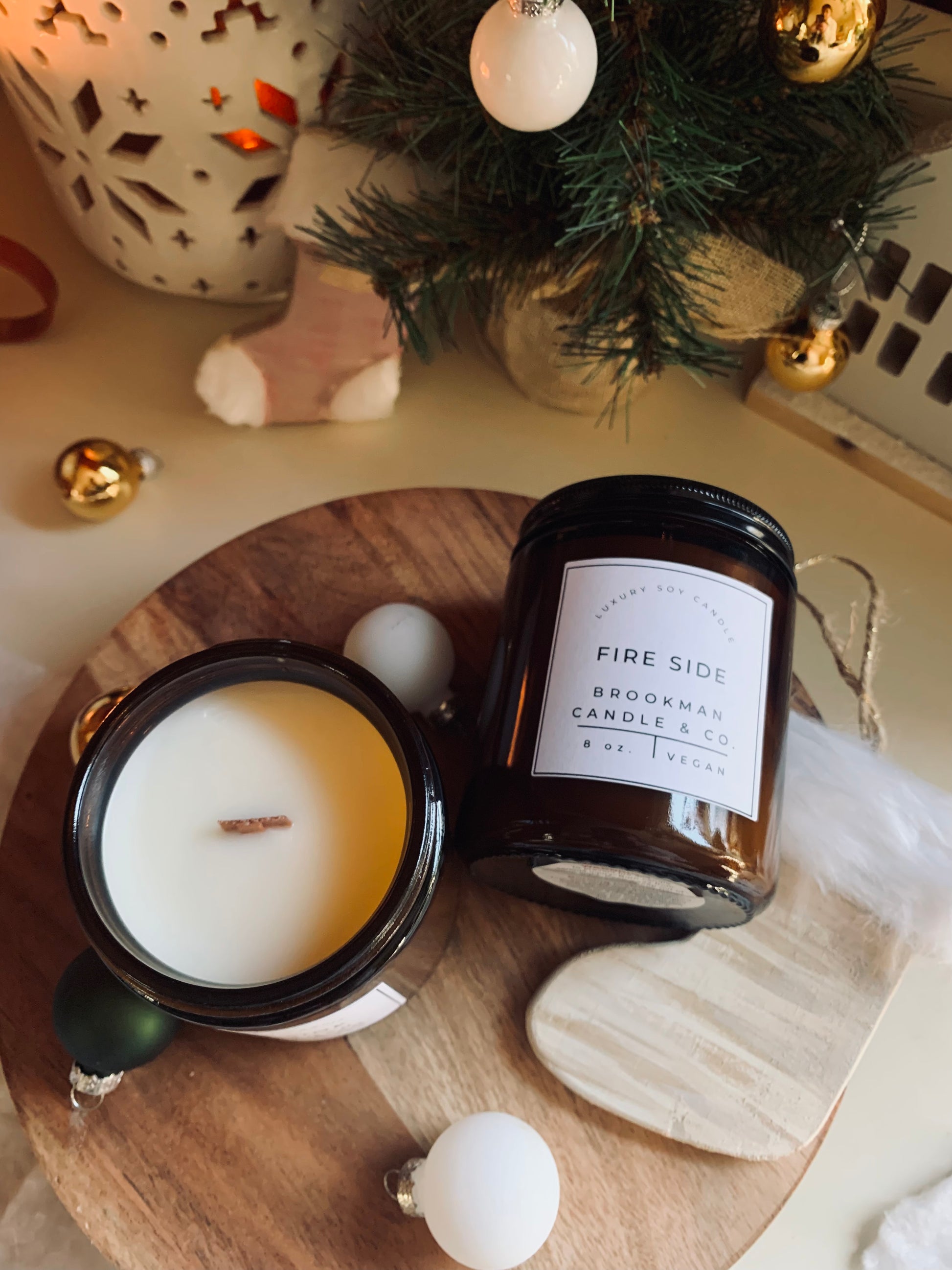 Fireside – Hand-Poured Coconut Soy Candle (8 oz. Amber Glass)