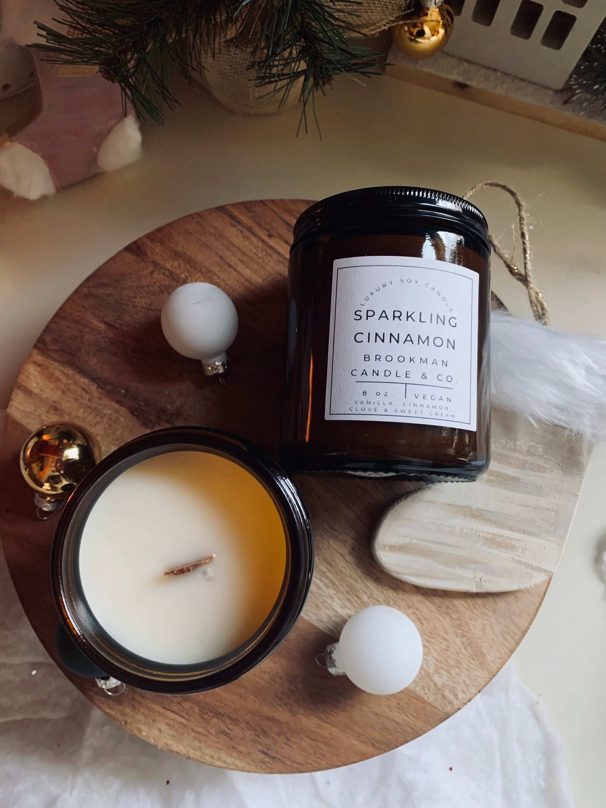 Enjoy our beautiful hand poured Paraffin and Paraben free, Natural Soy candles in a reusable 8 oz. Amber vessel, served with a sustainably sourced crackling wooden wick.