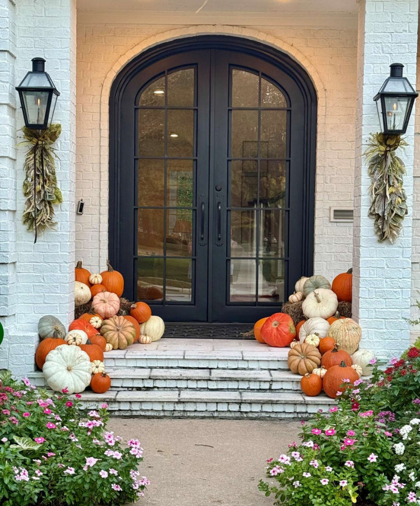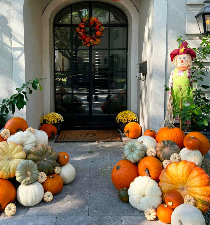 An overflowing, luxe arrangement for those who want a truly show-stopping front porch. Think statement stacks, lush textures, and full-on fall magic.