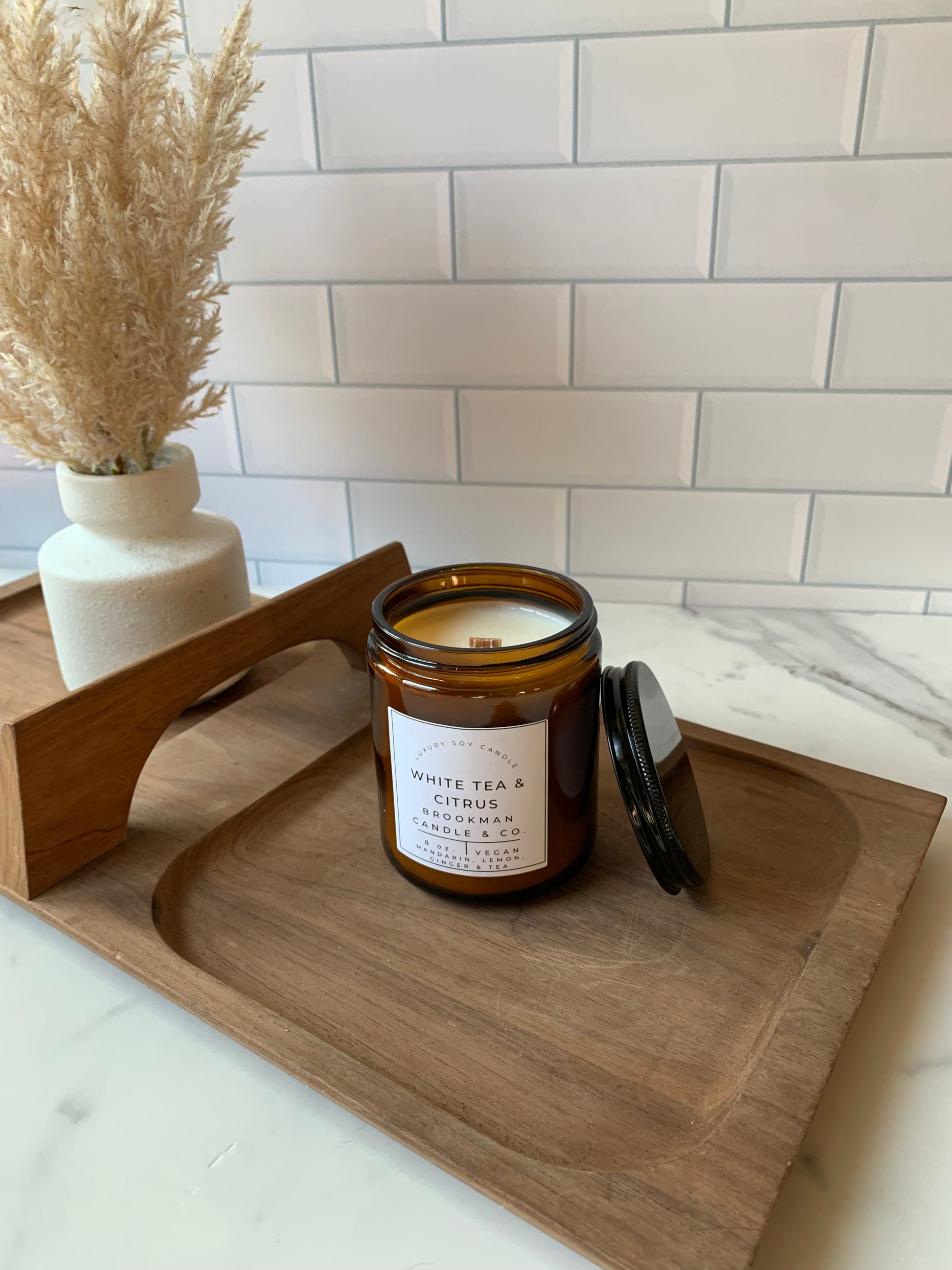 Deeply aromatic, this scent begins with top notes of mandarin and lemongrass amplified by mid notes of bergamot and ginger steeped in a base of white tea and jasmine. Uplifting and ethereal, this scent transforms any space into a soothing atmosphere.